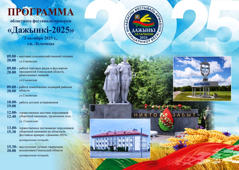 До знаменательного события остается совсем чуть-чуть – городской поселок Лельчицы приготовился радушно принять участников областного мероприятия. Именно в 2025 году впервые Лельчицы станут местом проведения традиционного сельского праздника «Дожинки-2025».